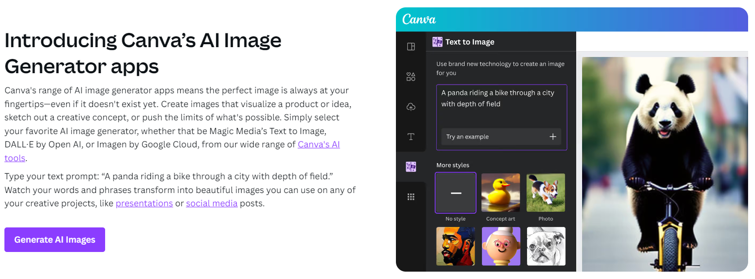 - Canva does a good job of bringing several visual generating AI tools together under one roof.