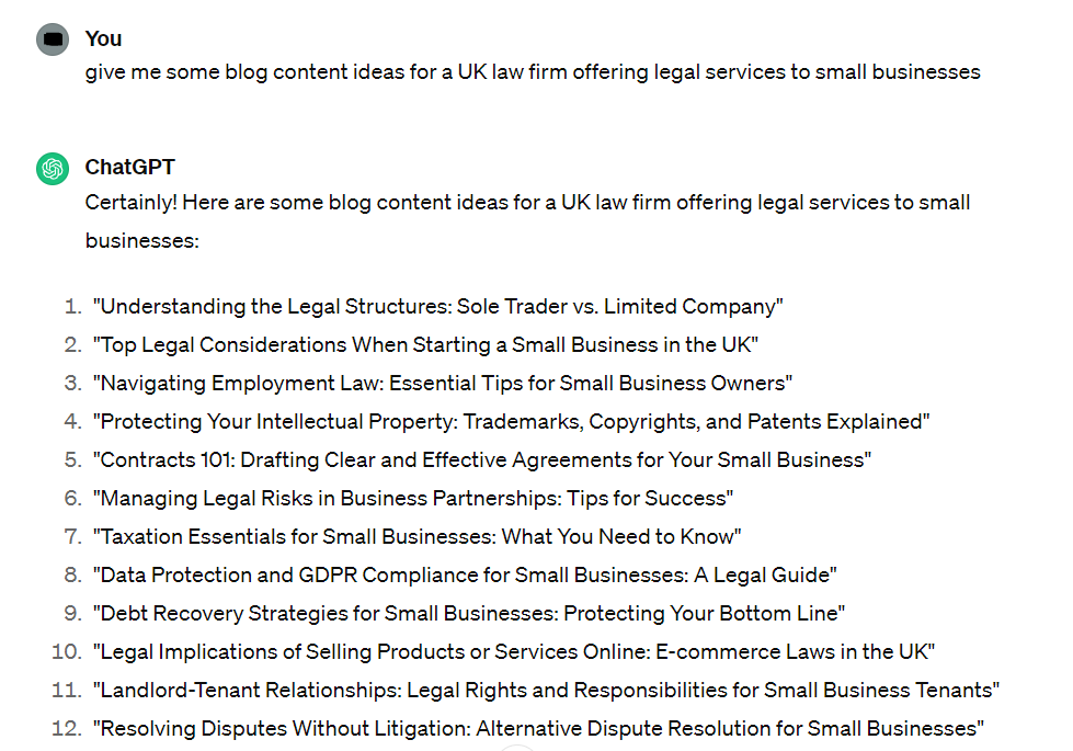 If you think about the level of detail needed to prompt some generative AI tools to do exactly what you want, it’s not dissimilar to what goes into creating a content brief in the first place. However, it could potentially actually help us to improve the way in which we communicate with our teams and certainly the ways we delegate content tasks. Making instructions clear, giving specific context and thinking of all the details that cover every base is a great practice for helping human writers and content creators to get things right, first time.Â