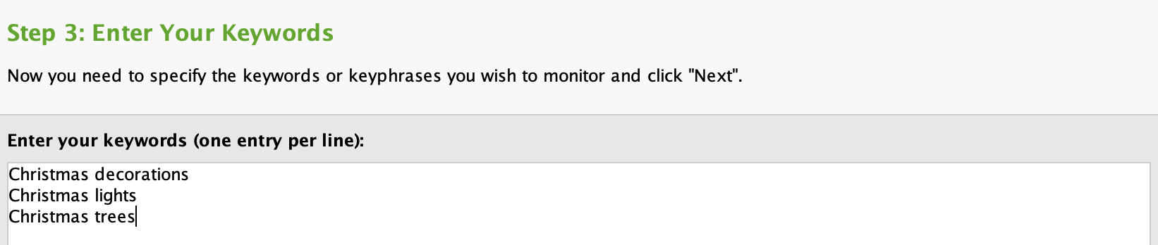 Enter your keywords in step 3, ensuring you enter as many keywords as you possibly have.