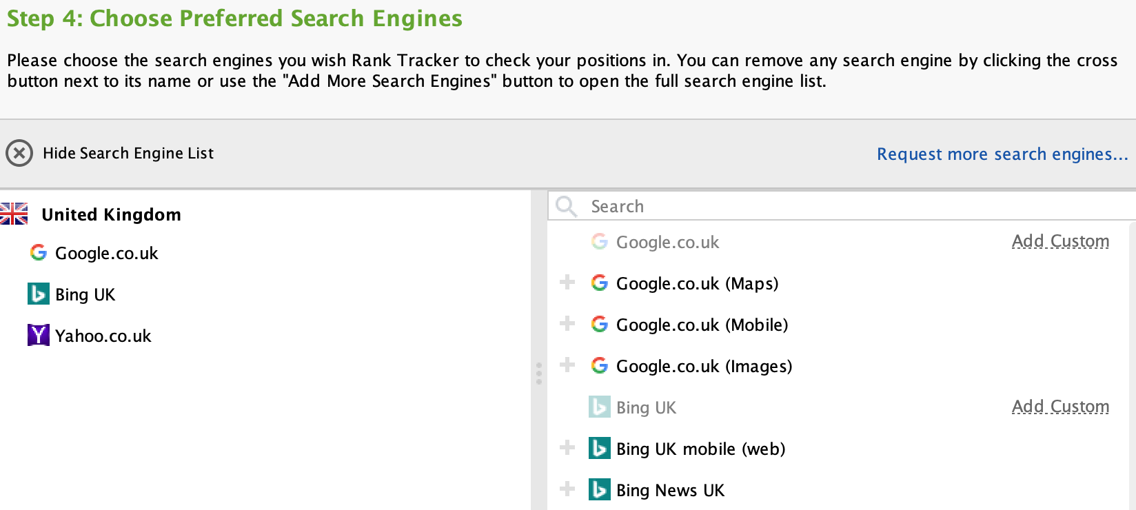 Step 4 is where you can start to add your desired search engines.