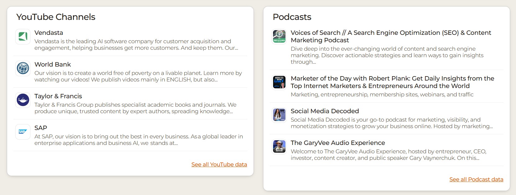 - Need actionable B2C insights? Try SparkToro. You can identify patterns in where your audience goes for their information (like press, socials, podcasts etc.), the brands they already connect with (giving inspiration on content type, tone, and more), as well as the different formats they engage with.